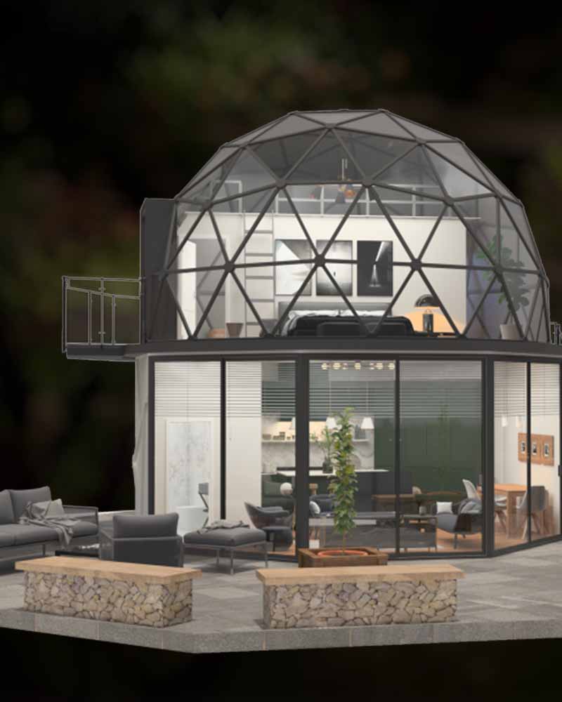Our focus is on three innovative products: geodesic tiny houses, foldable container houses and storage, and foldable restaurants and cafes. These solutions offer versatile and sustainable living and business spaces that cater to the modern need for mobility and efficiency.